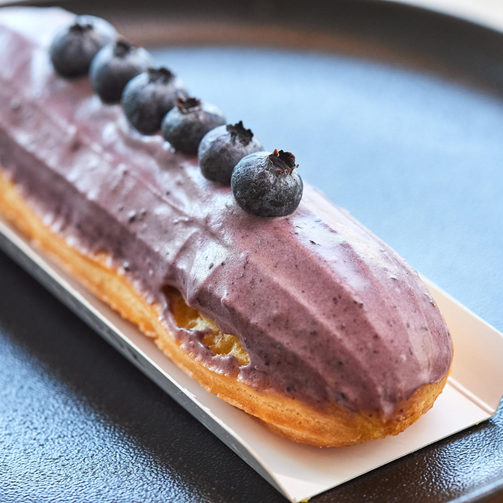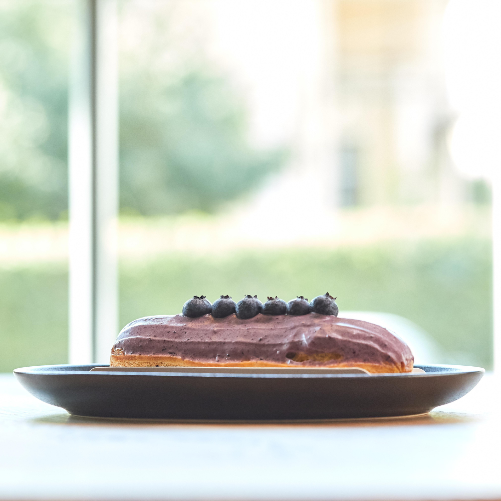 Ingrediente: OUĂ, LAPTE, UNT 82%, FĂINĂ albă de GRÂU, CIOCOLATĂ albă, apă, zahăr, FRIȘCĂ, glucoză, amidon, reducție de afine, gelatină, pastă de vanilie, sare.